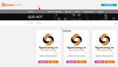 Reward Center thanh toán qua tài khoản ngân lượng hoặc thẻ cào.